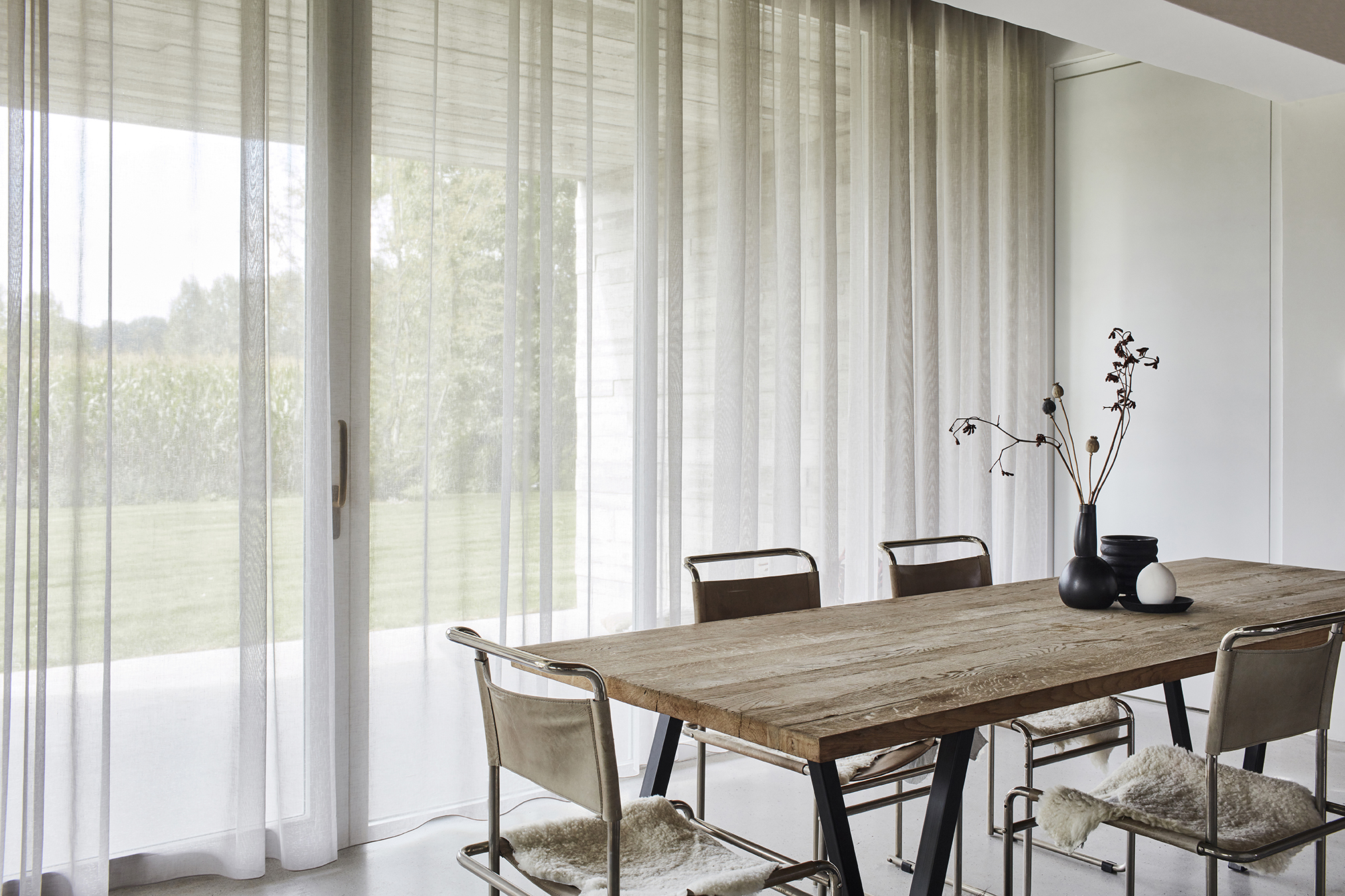 Tout en nuances, les voilages jouent de leur transparence. Ils laissent entrer la lumière en la tamisant et préservent l’intimité en floutant les silhouettes. Fins et délicats, les voilages rythment la décoration en douceur lorsqu’ils sont installés seuls. Associés à des rideaux plus épais, ils dynamisent davantage l’ambiance. On les retrouve dans toutes les pièces de la maison, pour habiller fenêtres, portes-fenêtres et baies vitrées de toutes dimensions.